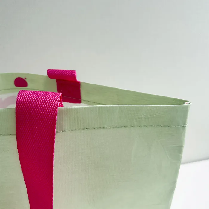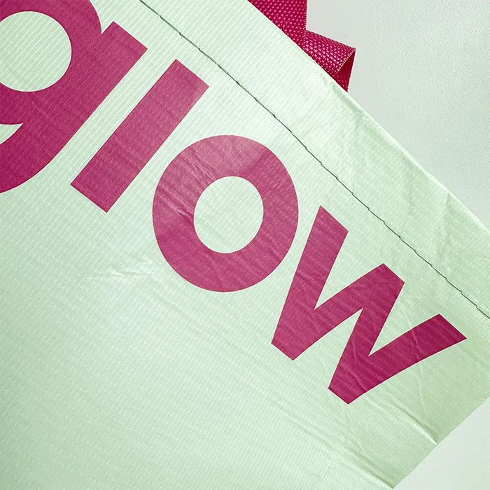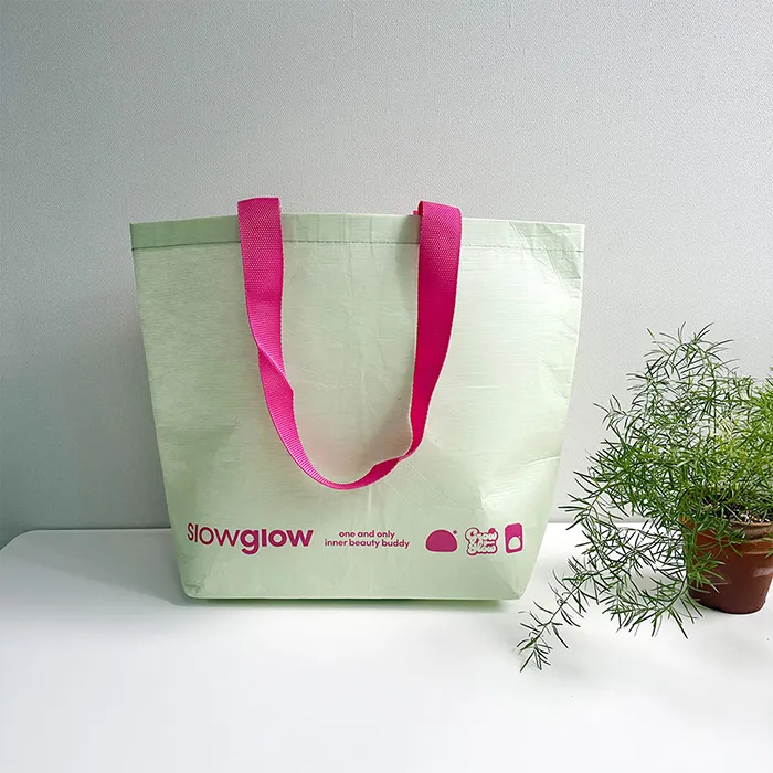 그레이고 최소 수량 1000ea 원단 R-pet 160g 아이보리 사이즈 470*370*150mm 바닥각형 인쇄 2도 동판인쇄 끈 나일론 웨빙 어깨끈(외부길이 60cm / 폭 3.8cm) 옵션 - 목록보기