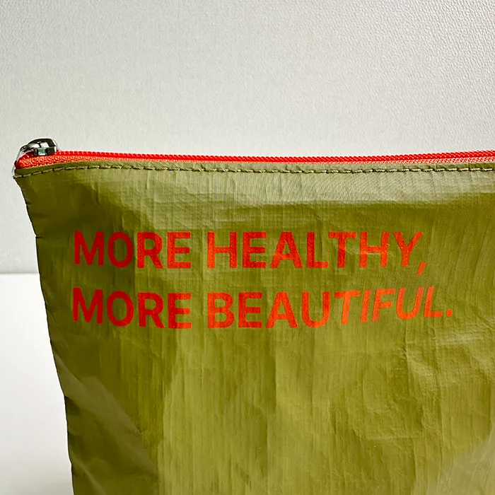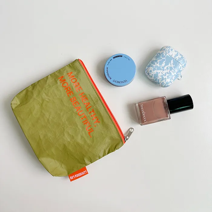 린바디랩 최소 수량 500ea 원단 타이벡 소프트(올리브) 사이즈 160*120*40mm 바닥각형 인쇄 단면 1도 인쇄 끈 3호 지퍼, 3호 니켈 슬라이드 옵션 측면 직조라벨 목록보기