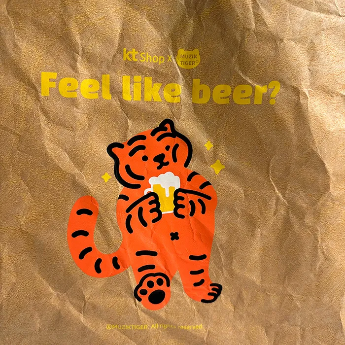 무직타이거 보냉백 최소 수량 500ea 원단 타이벡 하드(크라프트)+토이론 사이즈 330*440*120mm 옆M형 인쇄 면 5도,뒷면 4도 나염인쇄 끈 제원단 어깨끈 옵션 자석똑딱이, X자 봉제, 상단벨크로 목록보기