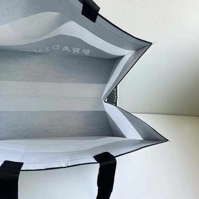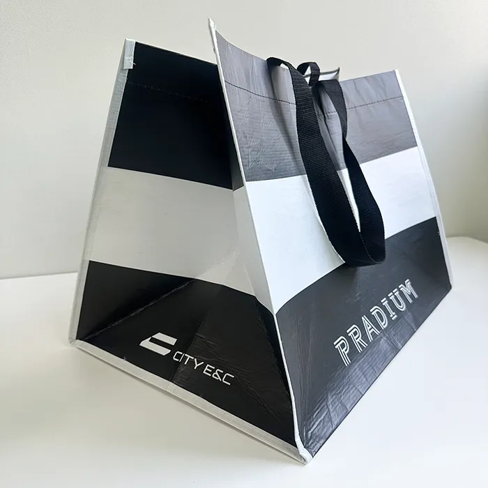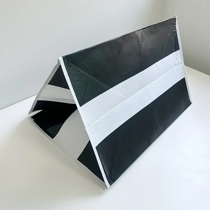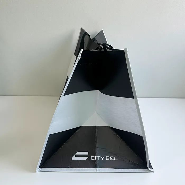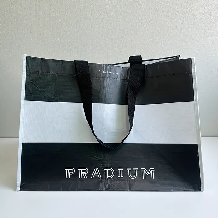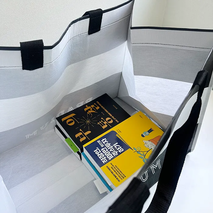 바론피앤에스 최소 수량 1000ea 원단 R-pet 160g 화이트 사이즈 520*380*350mm M형 인쇄 1도 동판인쇄 끈 검정 웨빙끈 (외부길이 65cm / 두께 3.8cm) 옵션 - 목록보기
