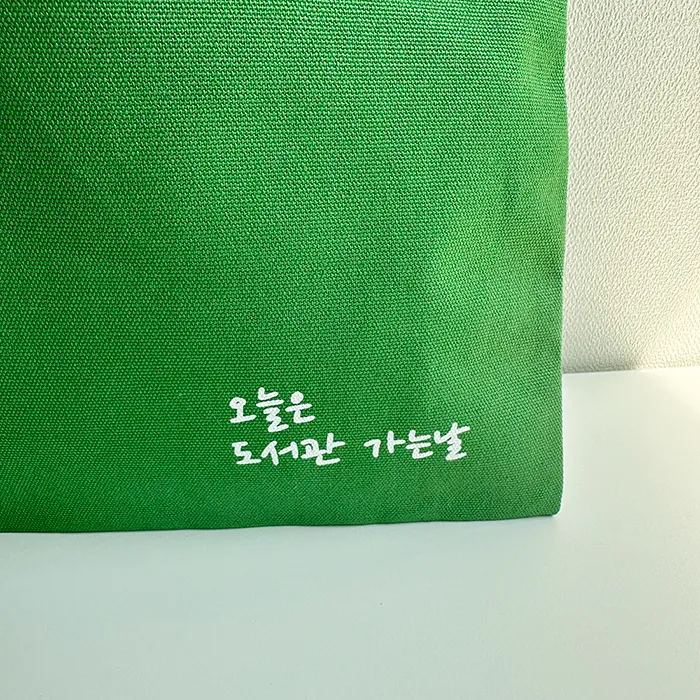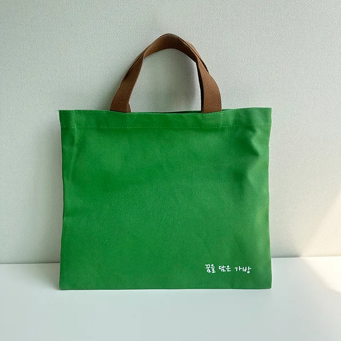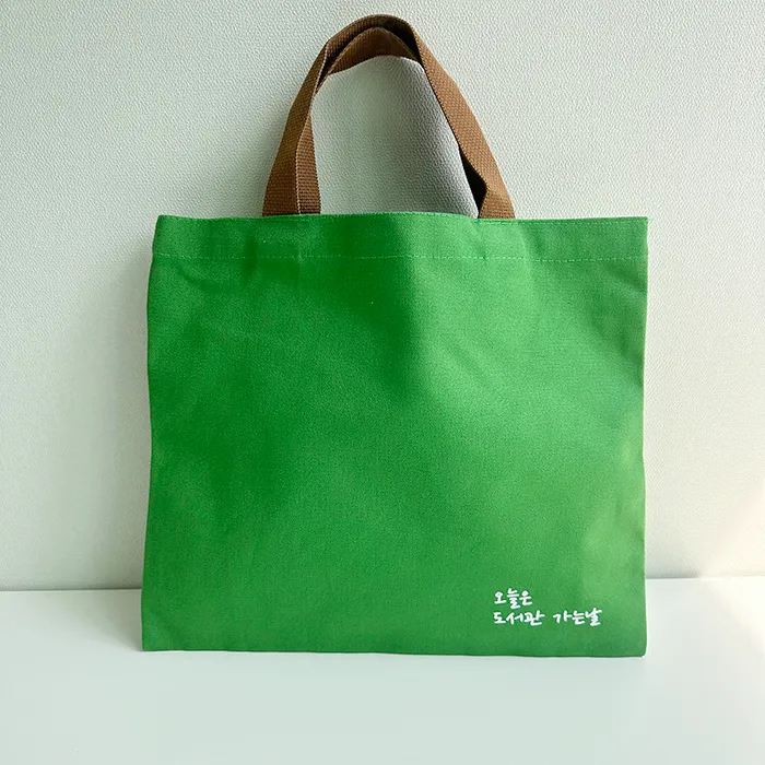 서울공덕초등학교 최소 수량 300ea 원단 10수 2합 초록 원단 사이즈 330*290(mm) 민자형 인쇄 1도 양면나염(화이트) 끈 갈색 손잡이끈(30번) (외부길이 28cm) 옵션 - 목록보기