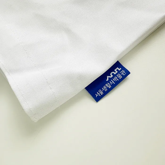 서울생활사박물관 최소 수량 300ea 원단 14수 트윌 화이트 원단 사이즈 330*400(mm) 민자형 인쇄 단면 1도 인쇄 끈 제원단 어깨끈 (외부길이 60cm) 옵션 안주머니, 직조라벨(1.5*4cm) 목록보기