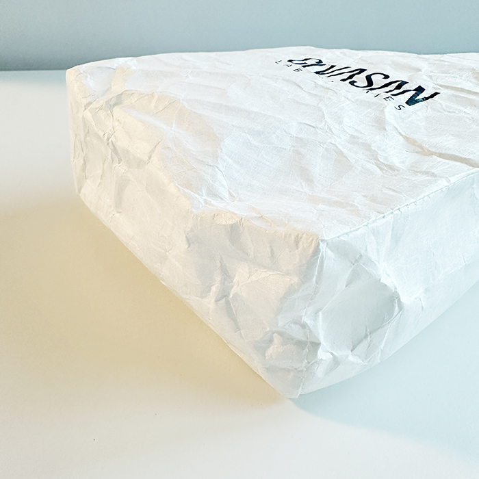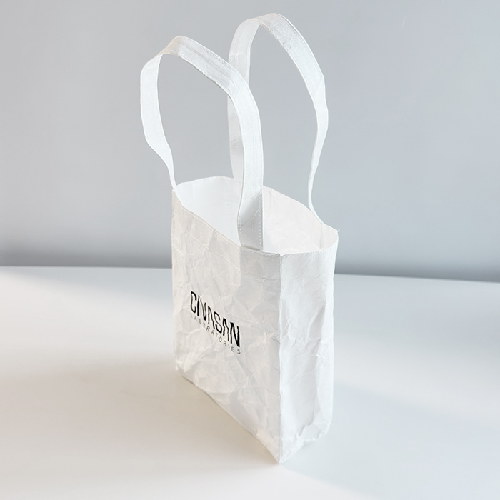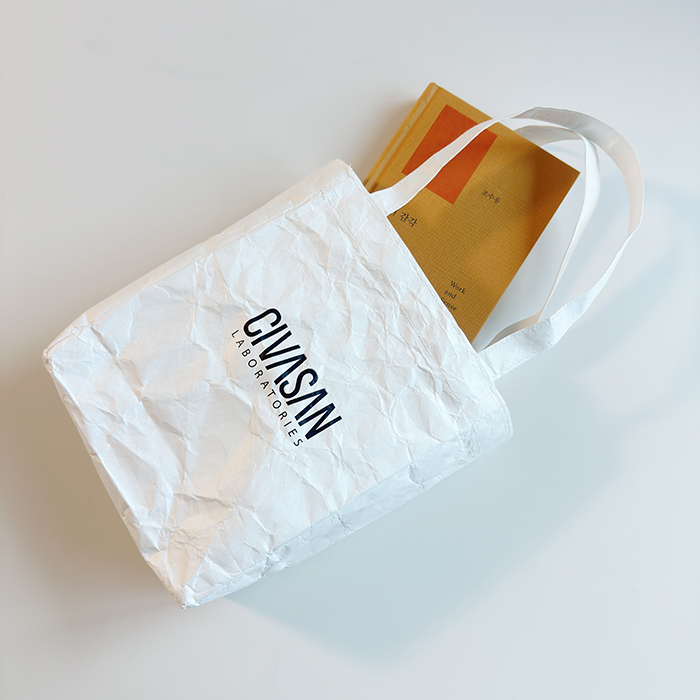 주)시바산 최소 수량 300ea 원단 타이벡 하드 화이트 사이즈 165*220*70mm 옆마찌M형 인쇄 양면1도 실크인쇄(81*32mm) 끈 제원단 손잡이끈(외부길이 36cm, 폭 2cm) 옵션 - 목록보기