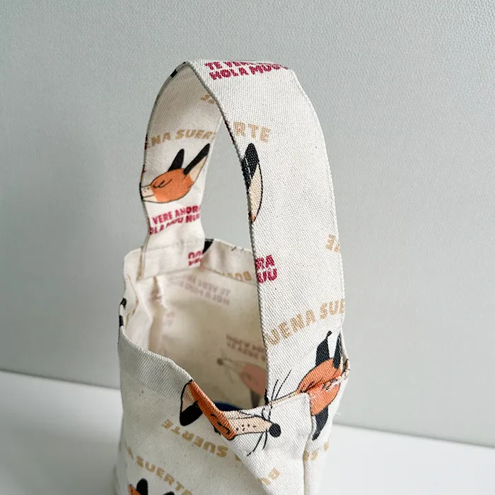 키디키디패션셀 최소 수량 300ea 원단 10수 2합 아이보리 원단 사이즈 230*230*50(mm) 바닥각형 인쇄 디지털 롤프린팅 인쇄 끈 제원단 끈 (외부길이 34cm) 목록보기
