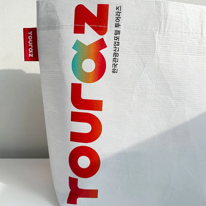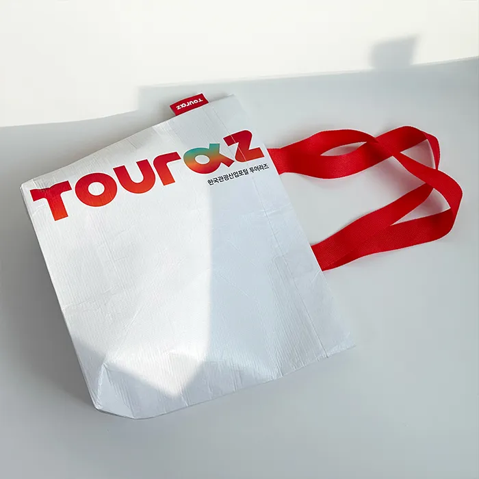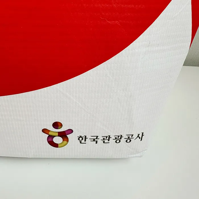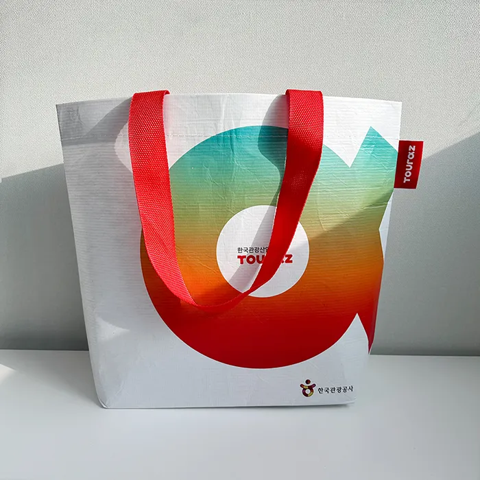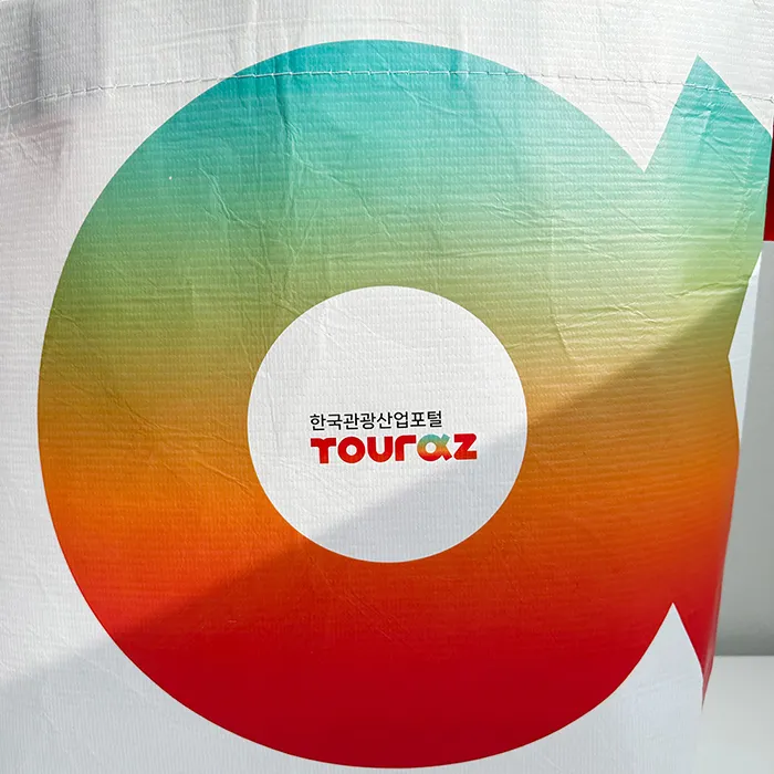 한국관광공사 최소 수량 1000ea 원단 고밀도 R-pet 사이즈 450*380*130mm 바닥각형 인쇄 4도 동판인쇄 끈 기성 웨빙끈(외부길이 60cm) 옵션 라벨 제작 후 봉제 목록보기