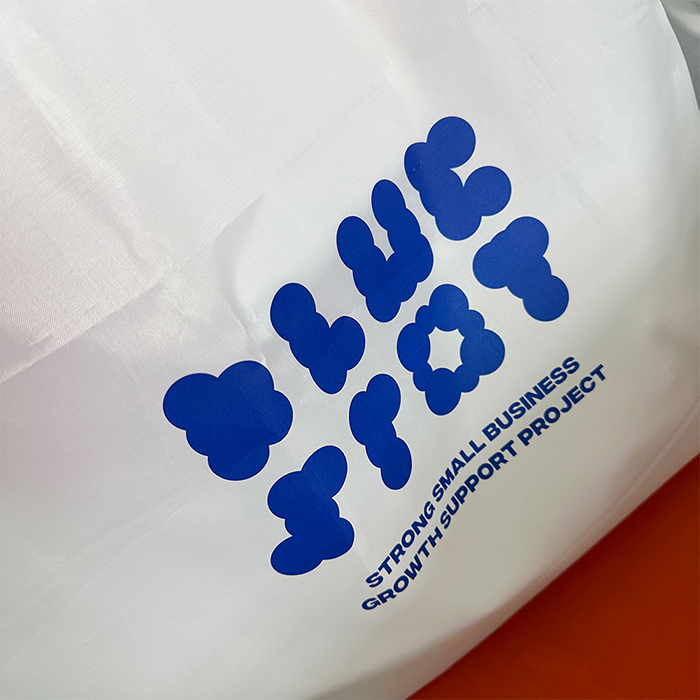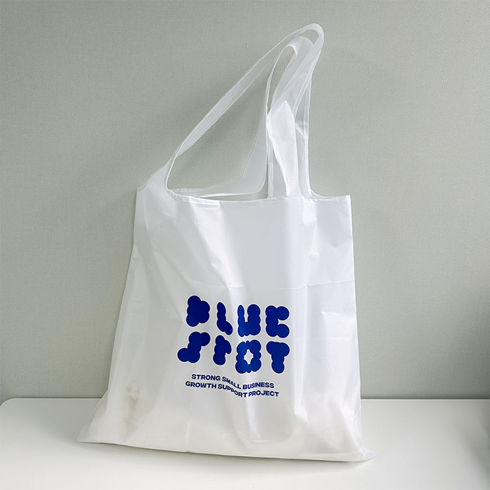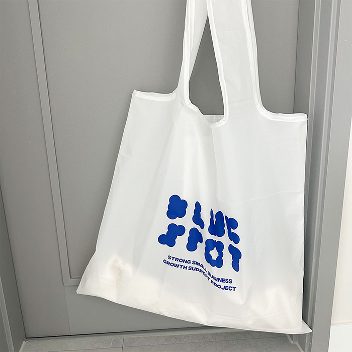 biscuit works 최소 수량 1,000ea 원단 R-pet 160g 아이보리 사이즈 510*460*150mm 바닥각형 인쇄 3도 동판인쇄 끈 웨이빙끈(외부길이 60cm / 폭 3.8cm) 옵션 X자 봉제 목록보기